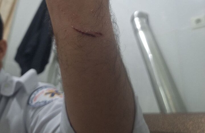 این حادثه در حالی اتفاق افتاد که امدادگر با لباس سفید و در حال ارزیابی وضعیت بیمار، ناگهان با یک وسیله تیز از ناحیه بازو و ساعد مورد ضرب و جرح قرار گرفت.